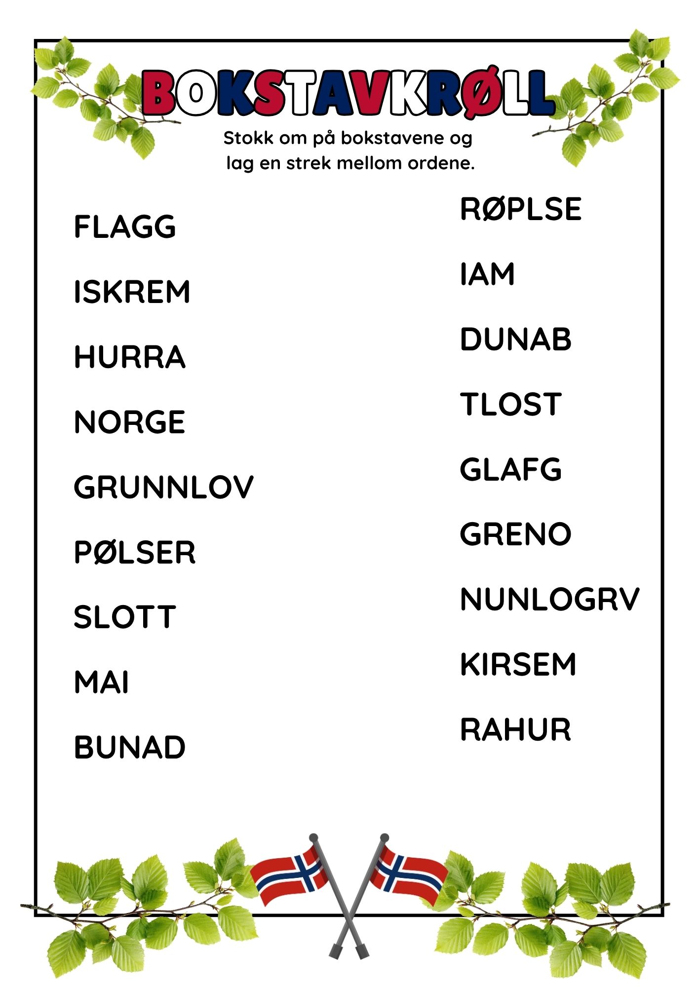 • Bokstavkrøll: finn ordene i de stokkede bokstavene.
