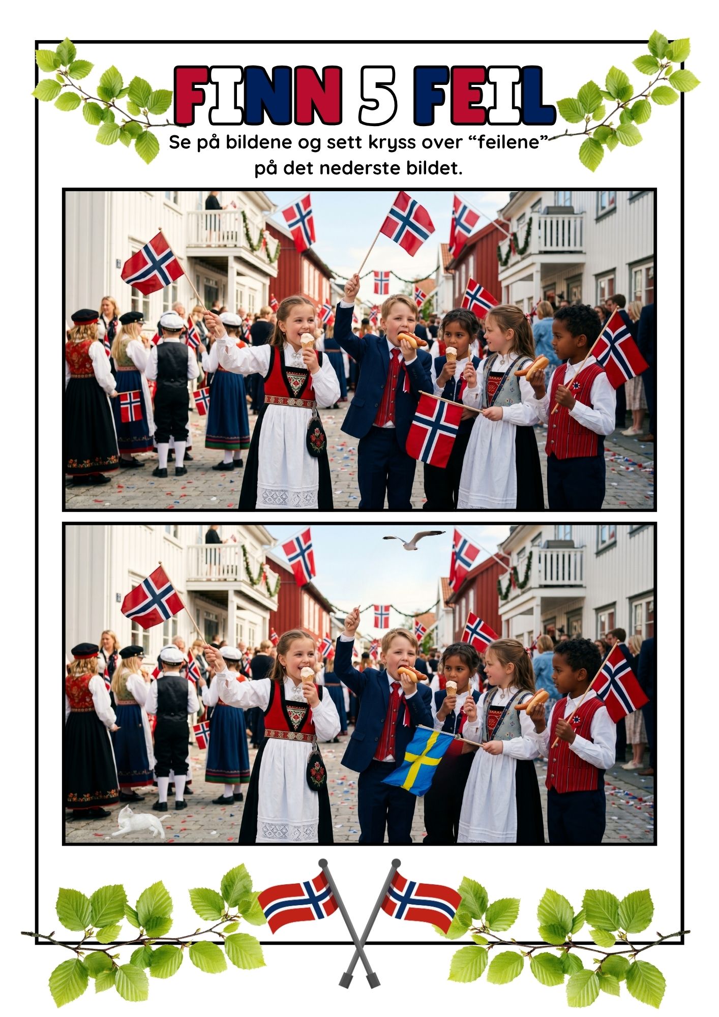 • Finn 5 feil: Finn 5 feil i 17. mai-bildene.
