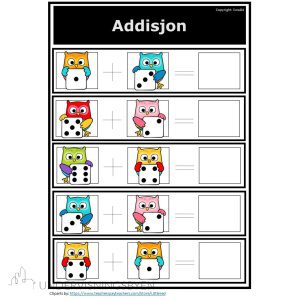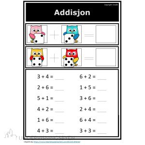 •Det er 7 arbeidsark Addisjon med 5 regnestykker på hvert ark.