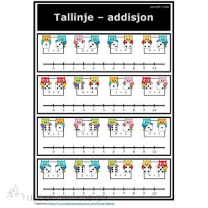 •Det er 2 arbeidsark med tallinje for addisjon.