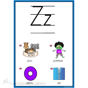 På alle plakater er det fire bilder med ord som starter på lyden til bokstaven. Det er ikke alle lyder som har tilhørende ord i det norske språk. Det er derfor tatt med engelske ord som elevene lærer seg fort. Dette gjelder på plakatene q, x og z. På plakatene c og w er det ord vi har lånt fra engelsk språk, men som vi ofte bruker i norsk tale. De er derfor ikke markert med engelske flagg.