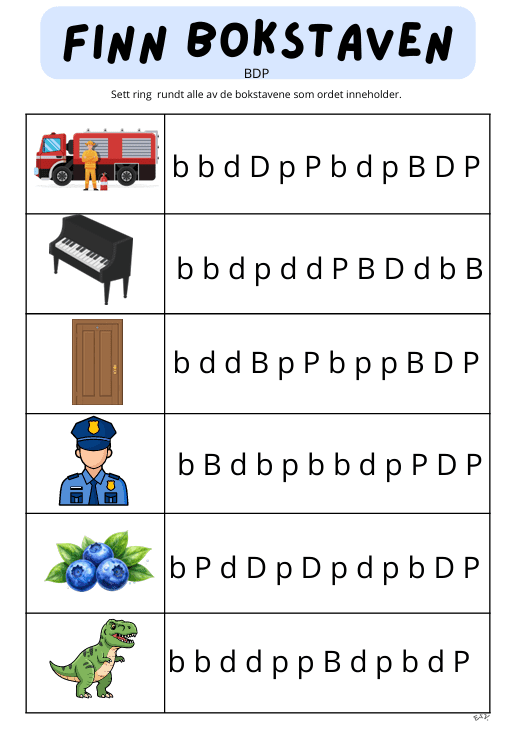 BDP finn bokstaven (6 oppgaveark)