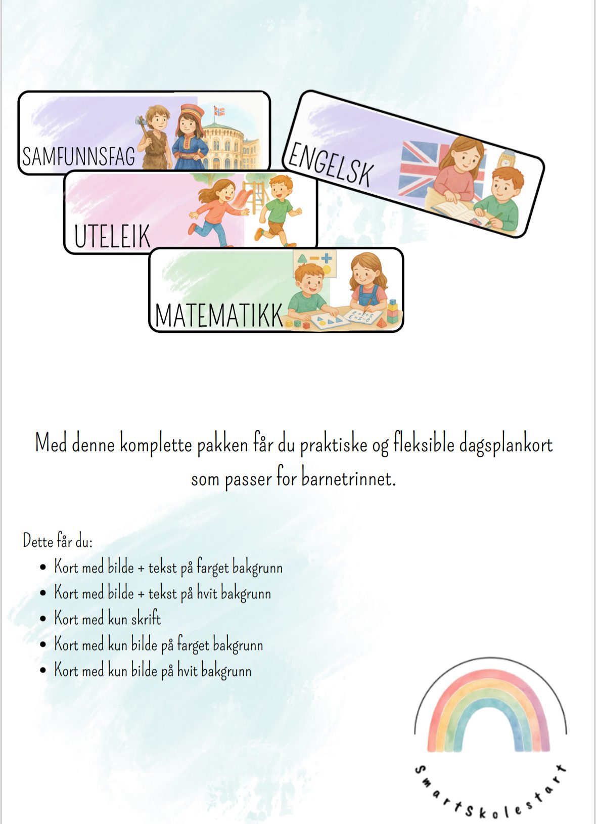 Med denne komplette pakken får du praktiske og fleksible dagsplankort som passer for barnetrinnet.
