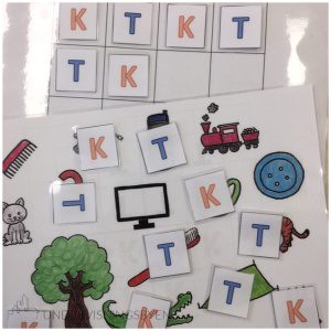 Dette materiellet er laget med tanke på å lytte ut og bevisstgjøre på første lyd i ord. Eleven skal finne ut om ordene starter på K eller T, og plassere bokstaven på bildet. Materiellet passer for elever som strever med å uttale disse lydene, eller trenger å øve på å lytte ut lyd først i ord (fonologisk bevissthet).
