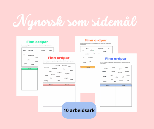 Dette er en fin aktivitet for å bli kjent med nynorsk. Den er såpass enkel at elevene kan føle mestring, samtidig som de øker ordforrådet sitt og blir kjent med vanlige forskjeller mellom nynorsk og bokmål.