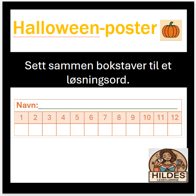 Her får du Halloween-poster som du kan bruke på utedag, utetime eller i gangen. Det er 12 forskjellige poster pr. trinn fra 1.- 4.klasse. Elevene tar med seg en bokstav fra hver post og ender opp med et løsningsord.