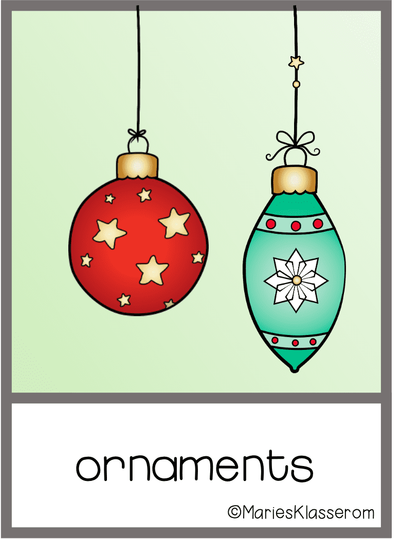 18 kort med ord og bilde. Tema jul. Bokmål, nynorsk og engelsk.