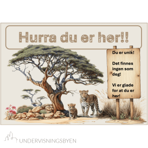 Dørdekor med to ulike velkomstskilt og “velkommen” med store bokstaver. Redigerbare navnelapper. Tilhører samlepakken Klasseromsdekor Safari Samlepakke. Dersom du kjøper hele pakken samlet, sparer du 40 kr.
