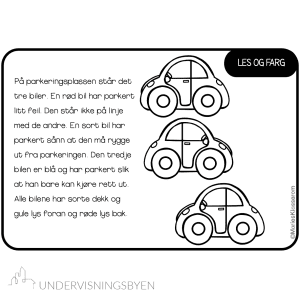 20 oppgaver hvor elevene skal lese teksten og fargelegge bildene etter det som står skrevet.