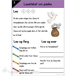 Denne ressursen inkluderer 10 lese- og skrive ark om påskefortellingen som er skrevet for elever som går i andreklasse. Du får også med ord- og bildekort som er fint for visuell støtte.