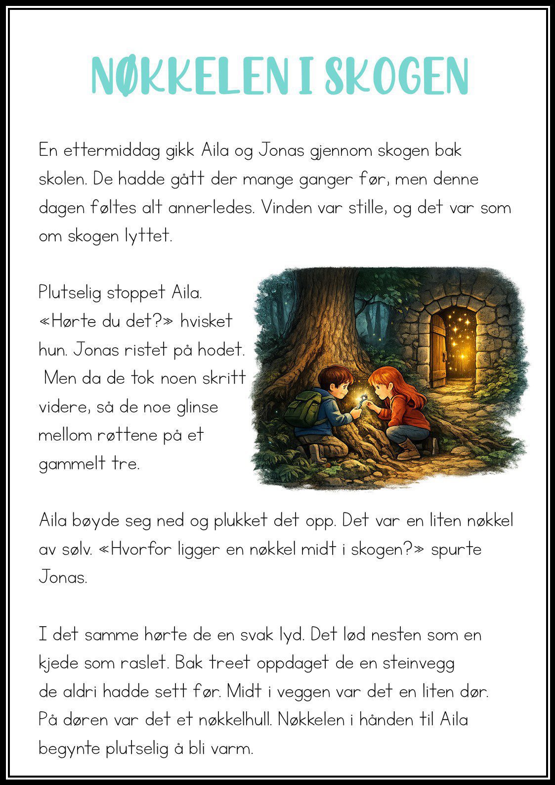 Opplegget inneholder spennende tekster i temaet: fantasy. Tekstene er tilpasset mellomtrinnet og har en lengde på ca. 100-150ord for god lesetrening.