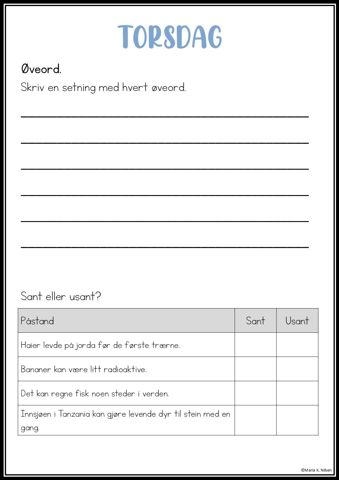 - Oppgaver for mandag–torsdag
