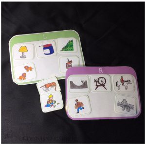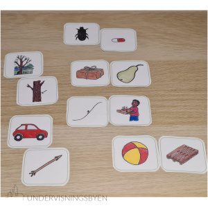 Minimale par inneholder 12 bilder (6 par), ordkort som hører til, sorteringsrammer, rammer til å sette sammen ett og ett par, to korkleker med minimale par, og instruksjoner. Minimale par kan brukes for dem som strever med å skille mellom språklyder, for eksempel erstatter f med s. Ofte begynner man med å lytte forskjellen på ordene, og deretter øve på uttale parene forskjellig.