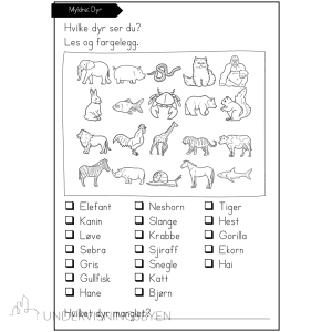 La elevene skrive om dyrene de ser, og fargelegge dyrene etter hvert som de skriver om dem. De kan skrive bare dyrenavnet, «jeg ser»-setninger eller lengre, friere setninger. Slik kan det lett tilpasses barnas ulike mestringsnivåer.
