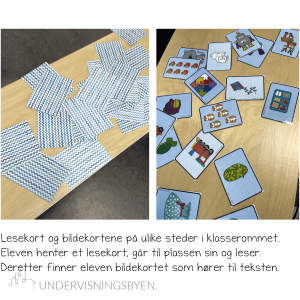Kortene kan brukes på ulike måter og er fin i aktiv læring, både inne og ute. Legg kortene på ulike områder i klasserommet og la elevene bevege seg mellom leseøktene. Ta bilder av kortene og lag en lesebok på læringsbrettet. Bruk kortene i høytlesing når elevene har øvd på dem, og bruk bildekartene i øving av nye fraser. La elevene lage tilsvarende kort selv, med disse som utgangspunktet, og øv på den måten å skrive på engelsk.